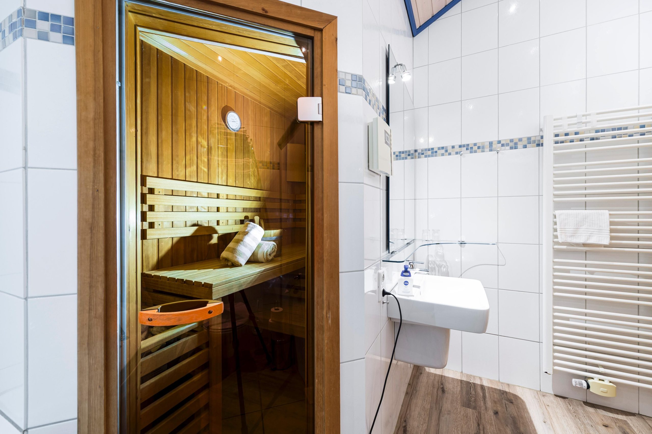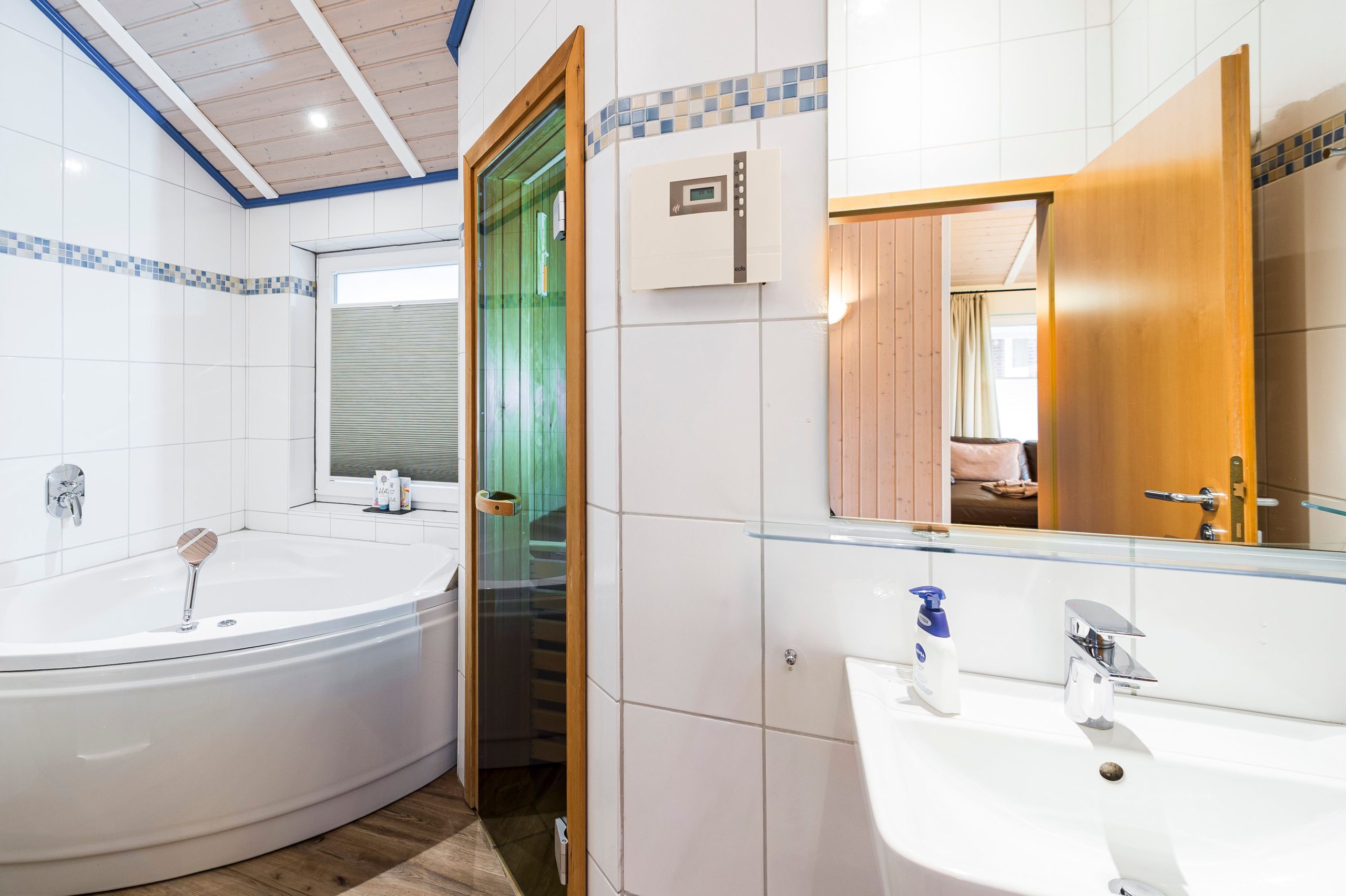 Es ist sehr luxuriös ausgestattet mit Sauna, Whirlbadewanne und Dusche im großen Badezimmer...Weiterlesen. Zudem gibt es ein separates Gästebad mit WC und Dusche. Die beiden Elternschlafzimmer mit je einem Doppelbett, sowie das Kinderzimmer mit Etagenbett, laden zum gemütlichen Schlafen ein.